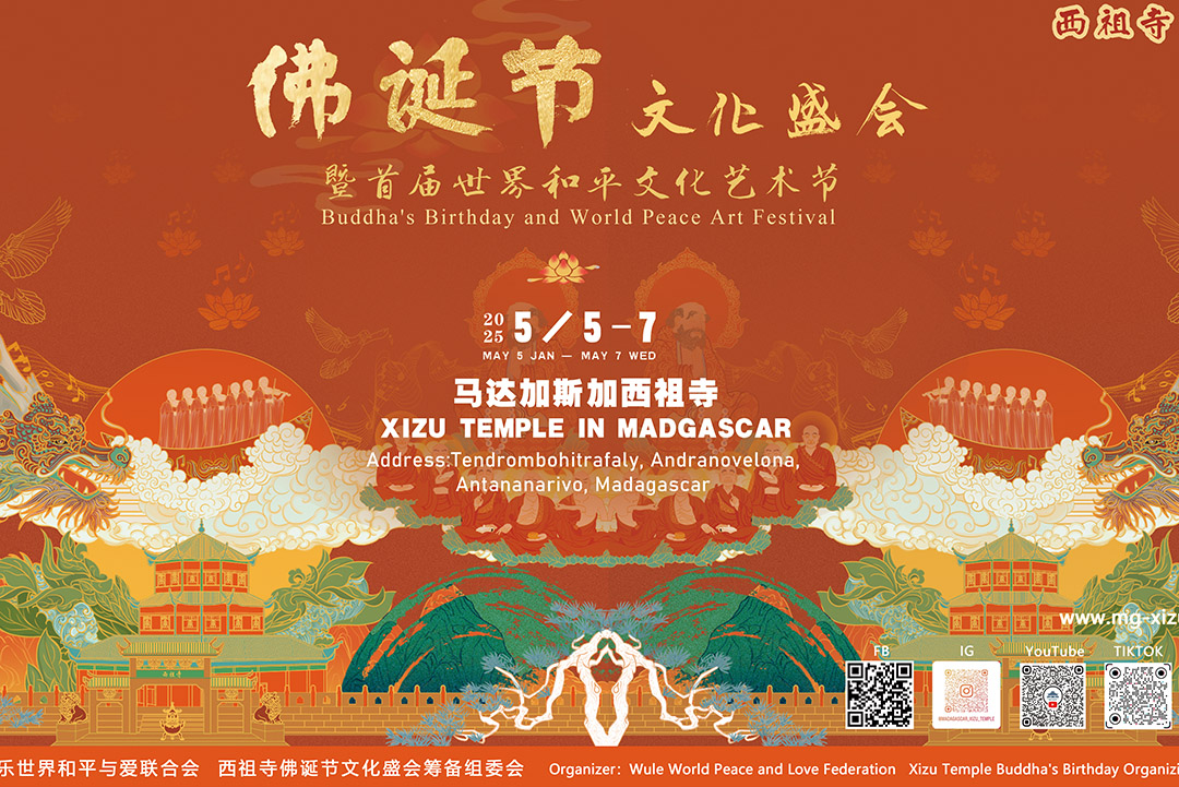 The Xizu Temple in Madagascar, United Wule World Peace and Love Federation, will hold a three-day "2025 Xizu Temple Buddhist Birthday Cultural Festival - and the First World Peace Culture and Art Festival" from May 5 to May 7, 2025.