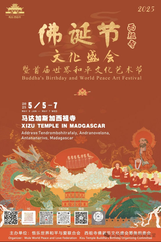 Xizu Temple Madagascar, in collaboration with the Wule World Peace and Love Association, will host the three-day "2025 Xizu Temple Buddha's Birthday and the First World Peace and Cultural Art Festival" from May 5 to May 7, 2025.